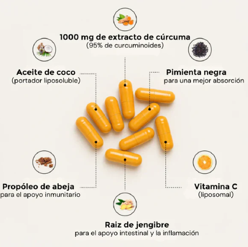Una fórmula concentrada de cúrcuma con curcumina diseñada para apoyar la reducción de inflamación interna y mejorar la movilidad diaria.